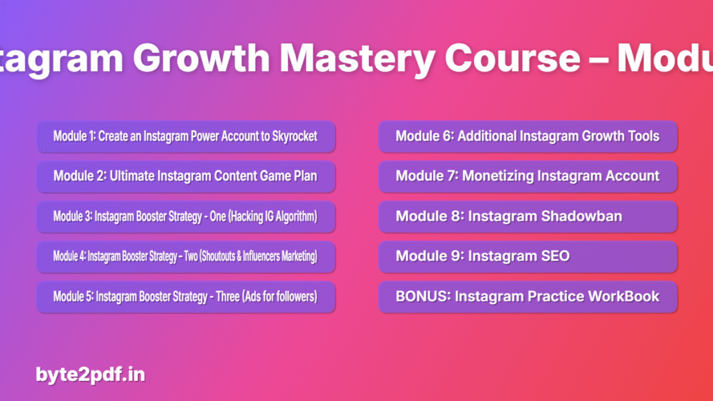 That’s precisely why we’ve developed the Instagram Growth Mastery Course: Algorithm Hack, Followers Boost & Monetization! This in-depth course is your ultimate guide to transforming your Instagram from a casual hobby into a powerful, revenue-generating machine. And just like Byte2PDF helps you transform documents, this course will help you transform your Instagram presence!